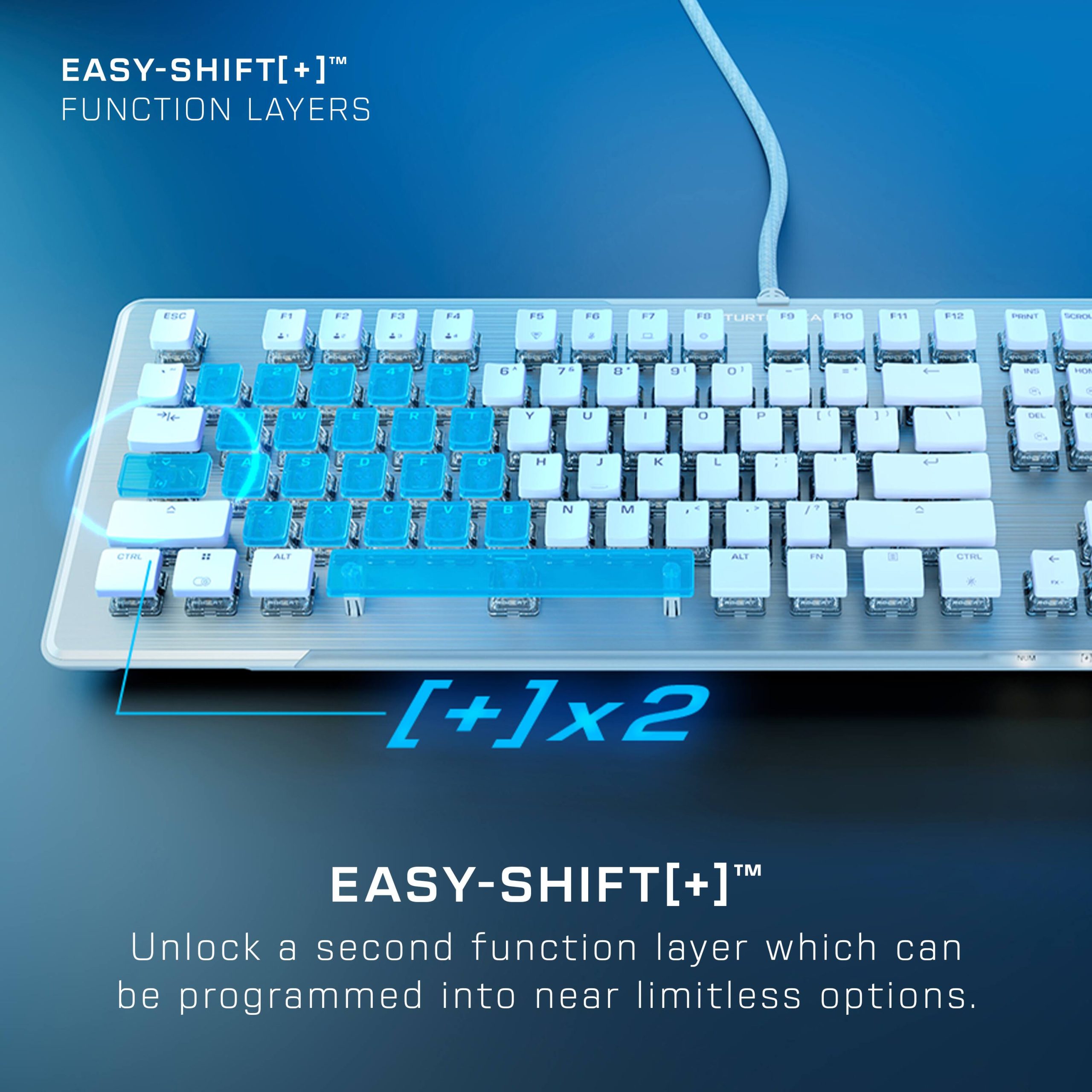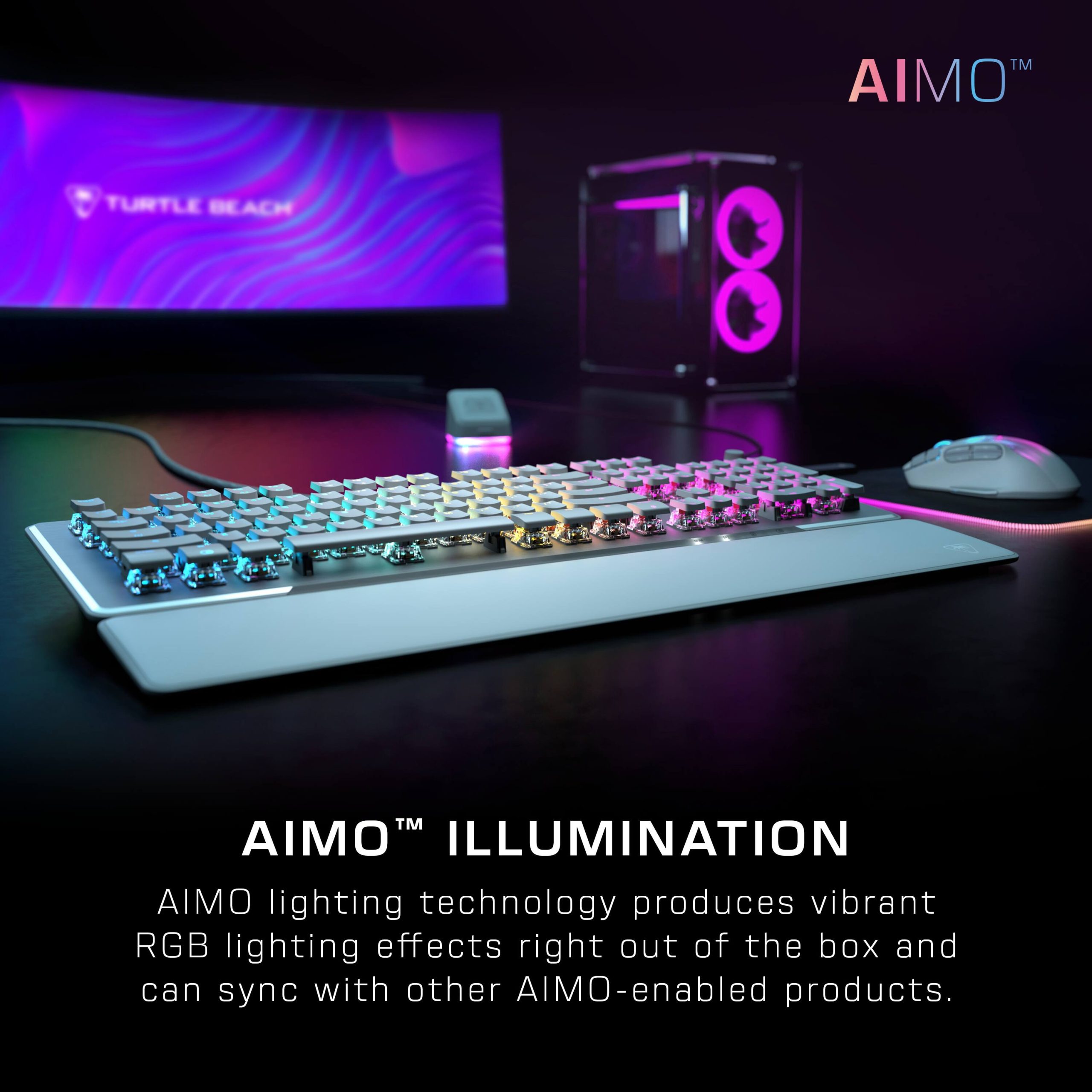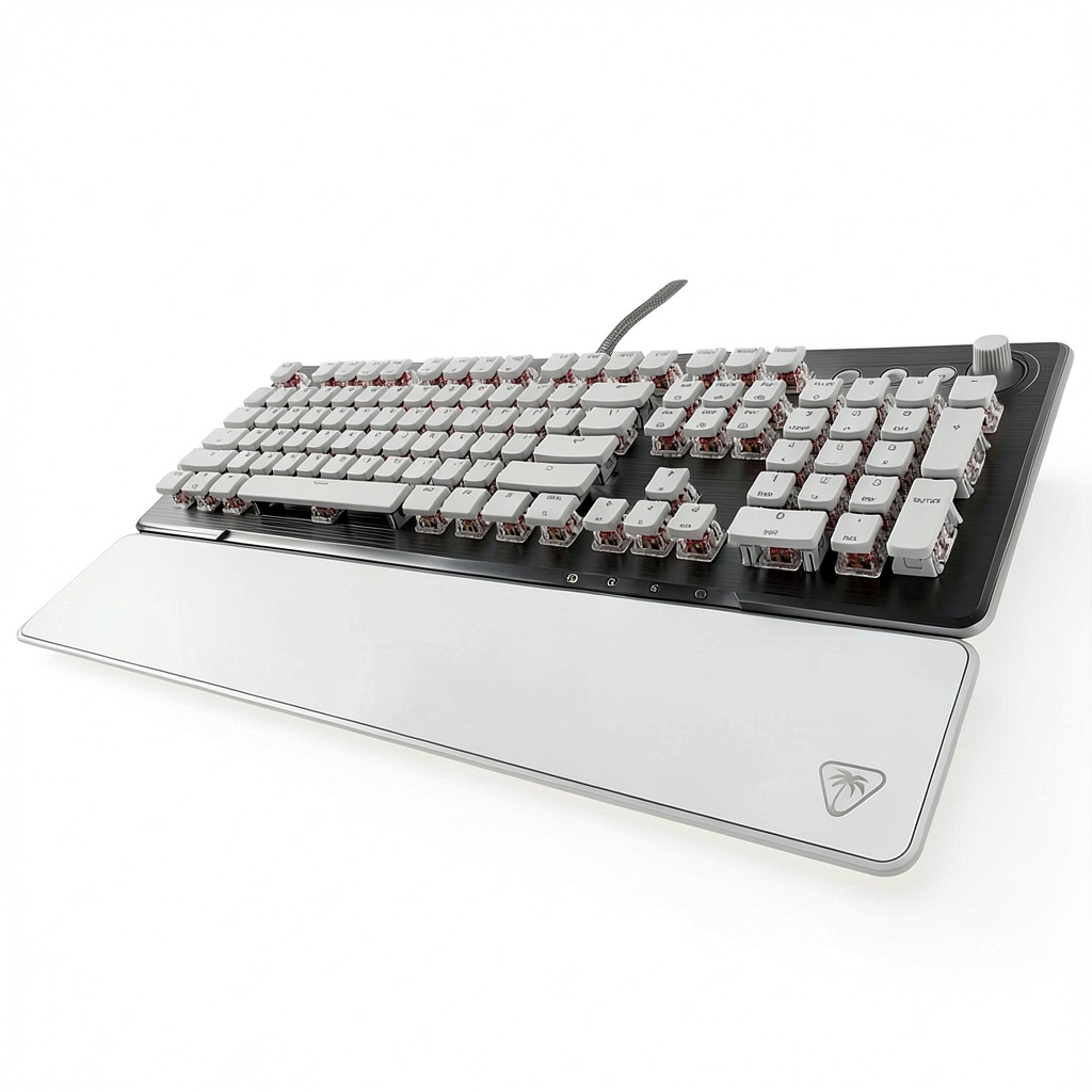 The Turtle Beach Vulcan II is a full-size wired mechanical gaming keyboard engineered with TITAN II switches for fast, tactile feedback and longevity. It boasts RGB illuminated keys that allow for extensive customization via software, enhancing both aesthetics and functionality. Constructed with a durable frame and high-quality keycaps, this keyboard is built to withstand rigorous use. Available in classic black or sleek white, it fits seamlessly into any gaming environment while providing essential features like anti-ghosting and full key rollover for uninterrupted gameplay.